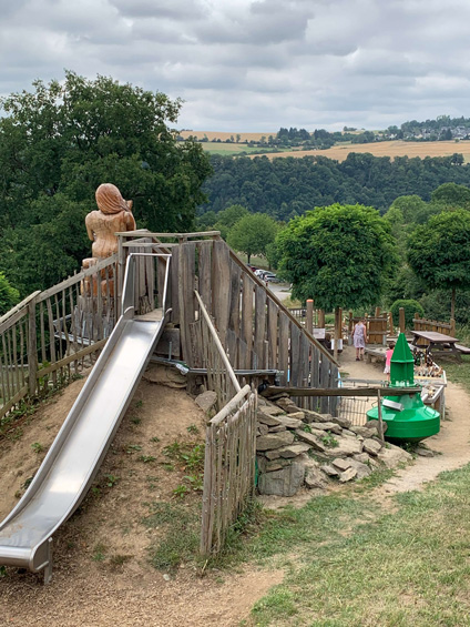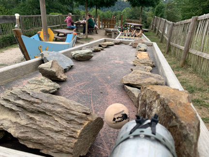 Wer zwischen den Abfahrten Pausen einlegen möchte, kann dies auf dem Spielplatz am Fuß der Bahn tun. Dort kann kostenlos gerutscht, geschaukelt, geklettert und balanciert werden. Drei Dinge kosten extra: die Pit-Pat-Anlage, eine Mischung aus Mini-Golf und Billard, der kleine Schaufelbagger mit Motor und die Kugel für die überaus lange und recht pfiffige Kugelbahn – sie kostet einen Euro und kann so oft, wie jeder mag, durch die Bahn geschickt und am Ende mit nach Hause genommen werden.