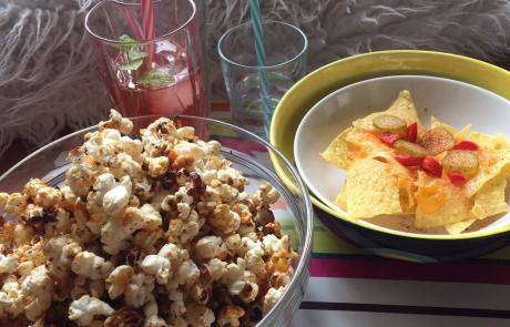 Jetzt machen wir uns alle vorm Fernseher gemütlich, die Knabbereien kommen mit leckeren Getränken auf ein Tablett und schon kann der Heim-Kino-Abend starten. Lasst es Euch gutgehen!